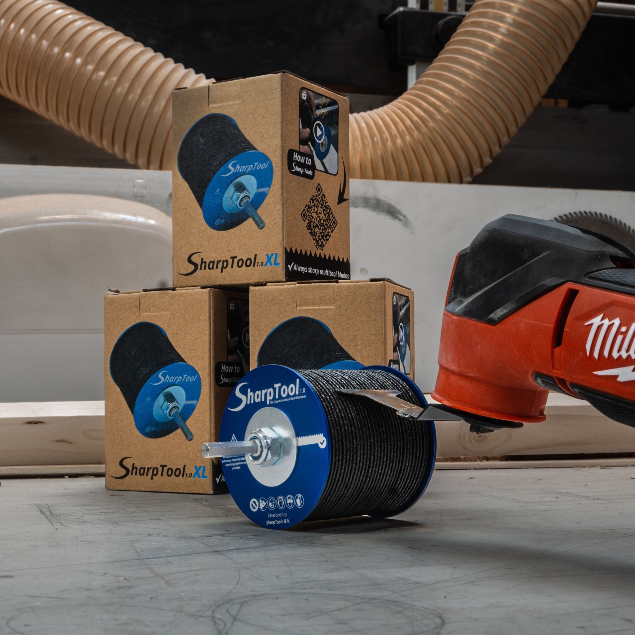 SharpTool 2.0From now on, multitool blades last 20× longer — thanks to a unique CBN grinding head. Powered by your (cordless) drill.